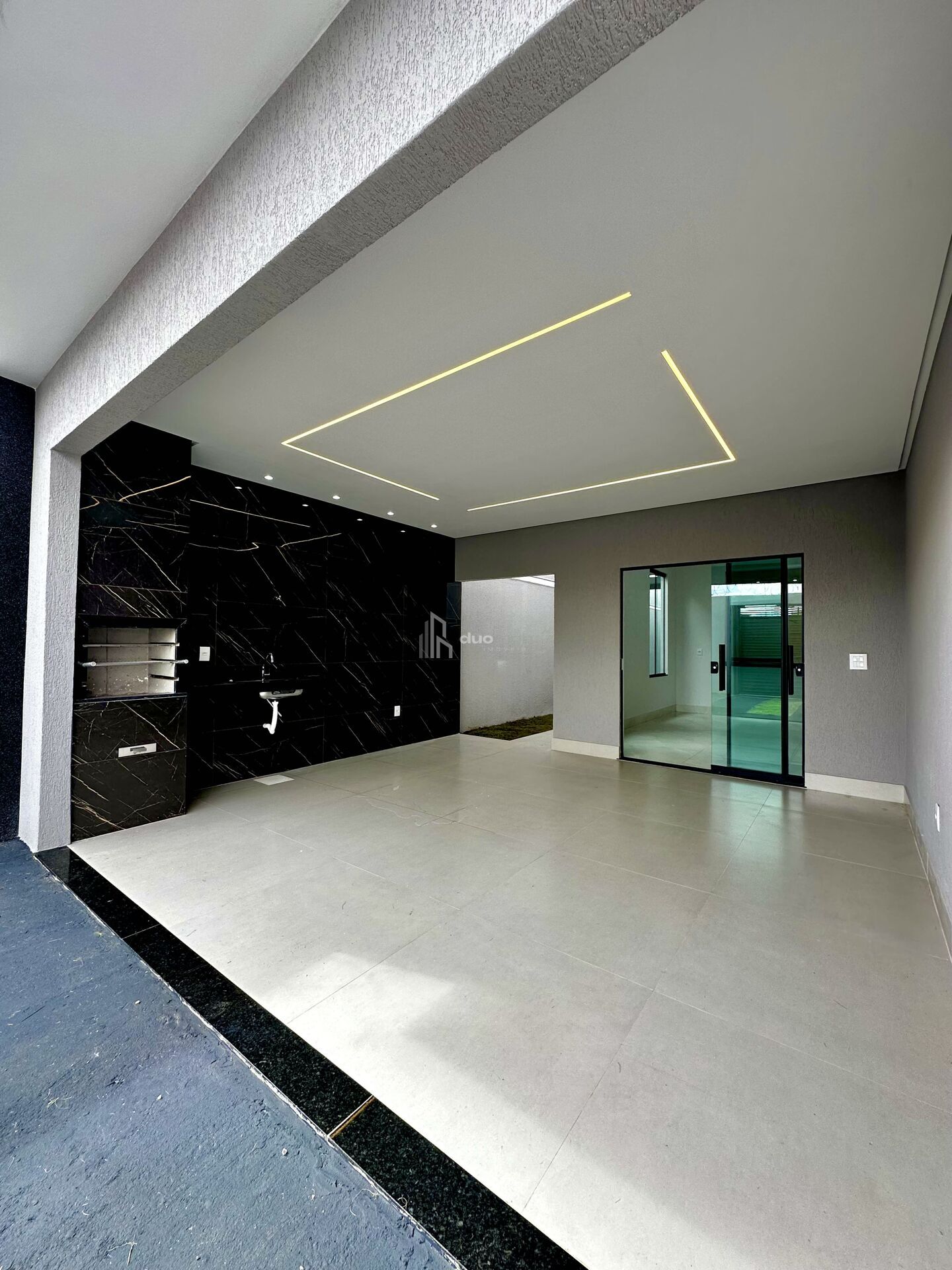 - Área gourmet integrada à garagem, com churrasqueira a carvão